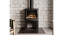 Moderne elektrische vrijstaande kachel van Ilektro met houtvak.