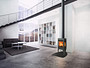 De Jøtul F163: een moderne houthaard ideaal voor plaatsing in een hoek.