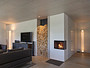 Prachtige inbouw houthaard van Rüegg met elegante draaideur.